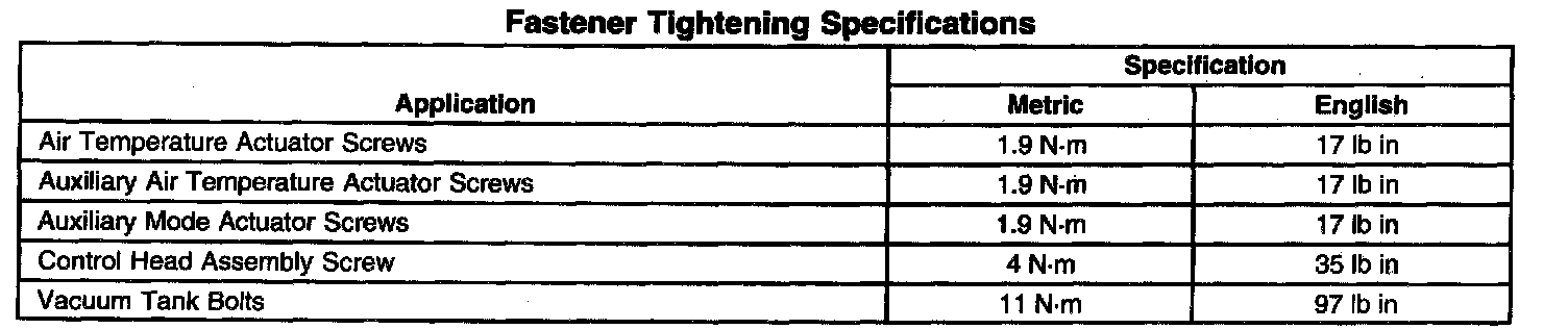 Fastener Tightening Specifications: