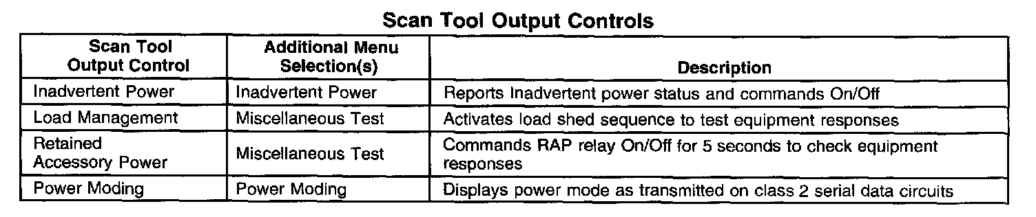 Scan Tool Output Controls: