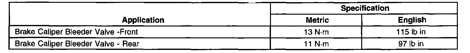 Brake Component Specifications