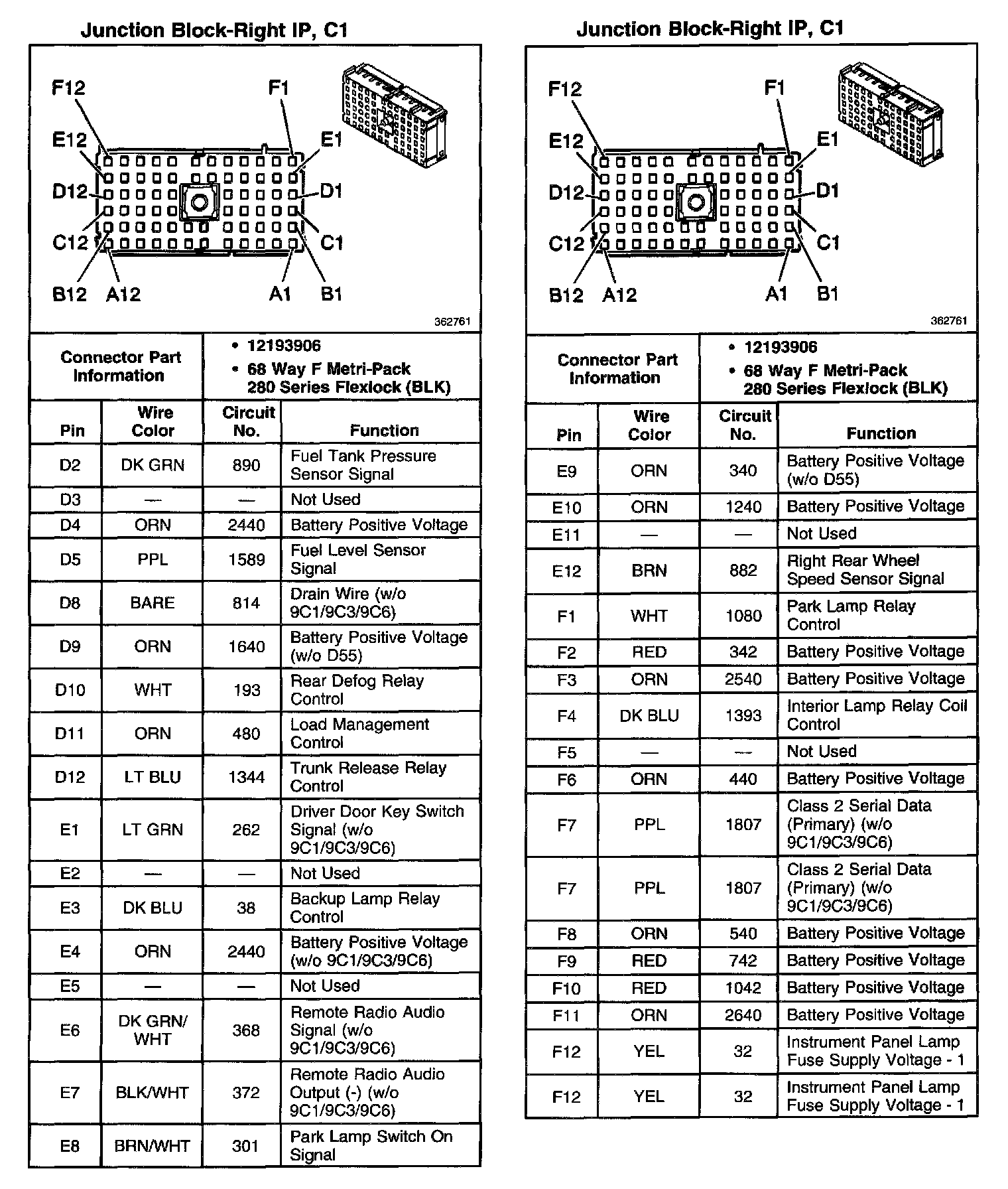 Junction Block-Right IP, C1 (Part 2 Of 2):