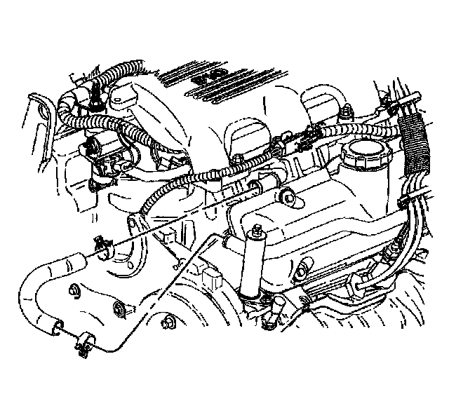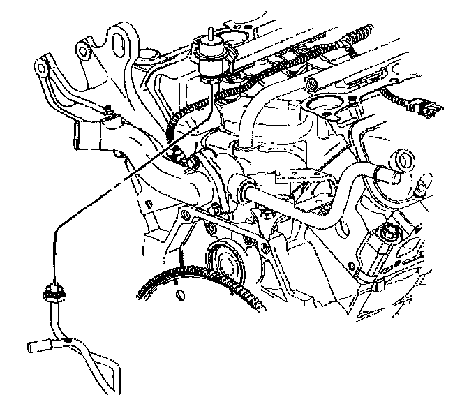 15. Disconnect the thermostat bypass hose from the thermostat bypass pipe and lower intake manifold pipe.