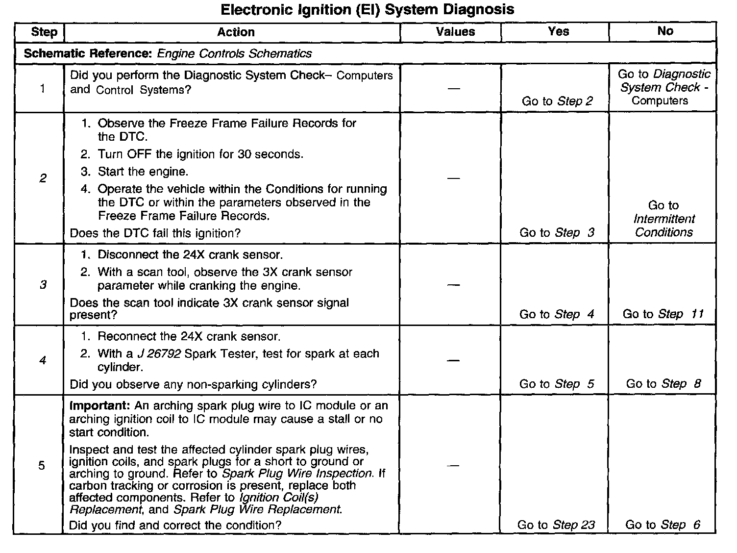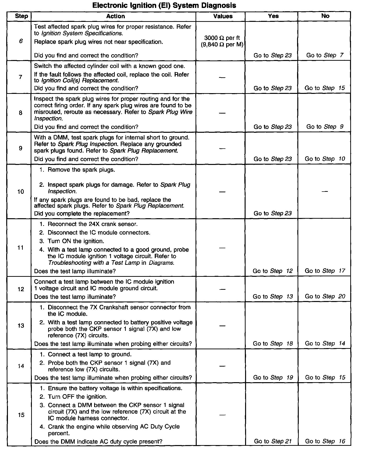 6. If a no spark condition follows the suspected coil, that coil is faulty. Otherwise, the ignition module is the cause of no spark. This test could also be performed by substituting a known good coil for the one causing the no spark condition.