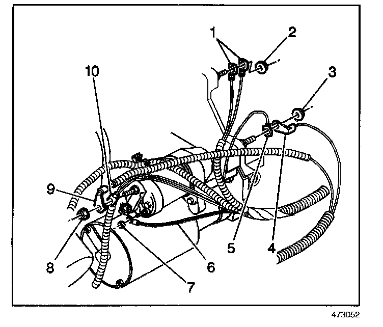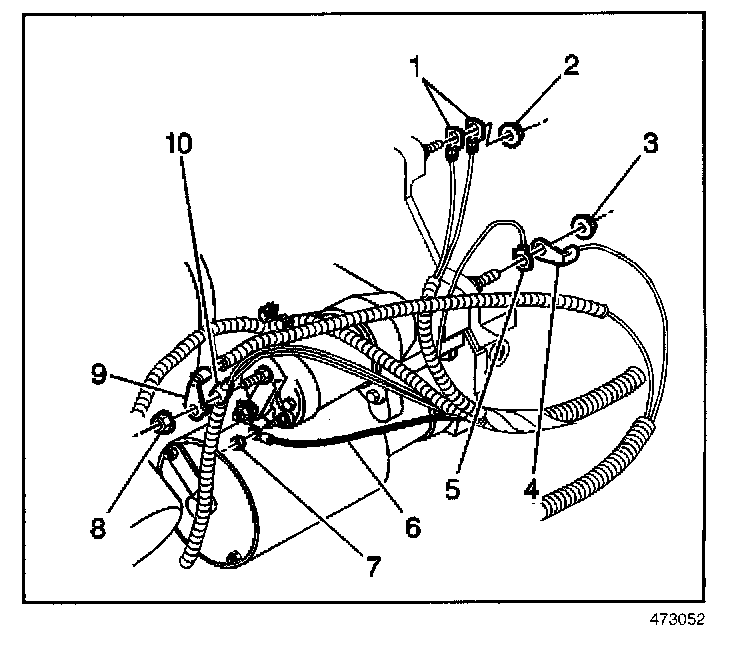3. Install the positive battery cable (9) to the starter motor BAT terminal.