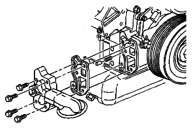 6. If replacing the engine front cover, install the oil filter adapter and pressure relief valve to the engine front cover.