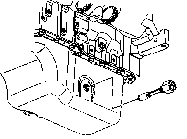 Important: The oil pan can be dropped slightly for engine front cover clearance if all pan bolts are loosened and the oil level sensor is removed.