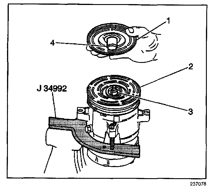 NOTE: Do not drive or pound on the clutch hub or the shaft. Internal damage to the compressor may result.