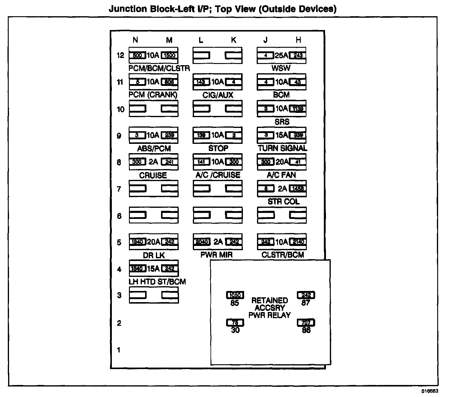 Junction Block-Left I/P; Top View (Outside Devices):