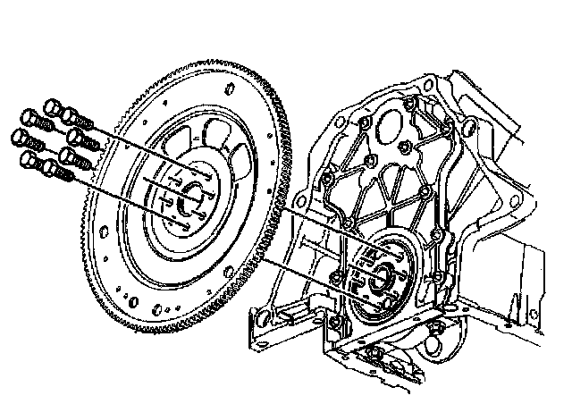 4. Remove 7 of the 8 engine flywheel bolts, leaving 1 bolt at the top of the crankshaft rotation.