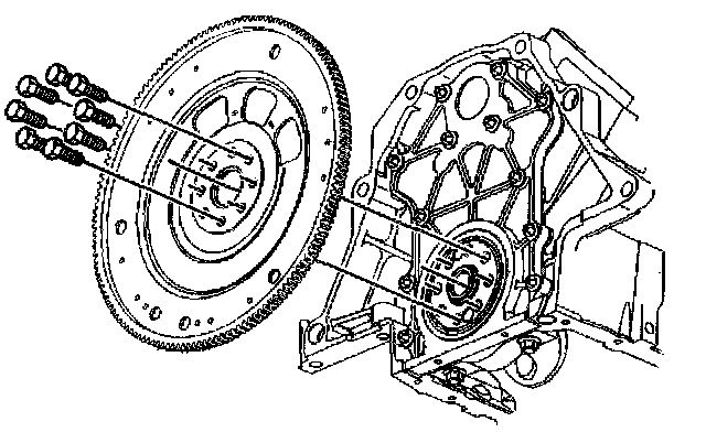 3. Loosen the 8 engine flywheel bolts.