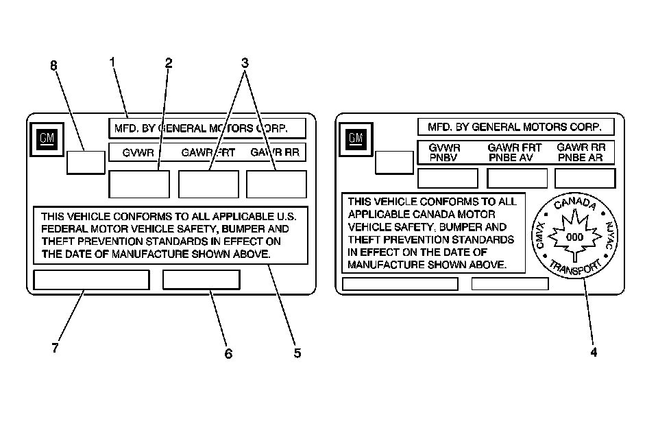 The vehicle certification label is permanently located on the edge of the driver's door. Refer to this label in order to obtain the following information: