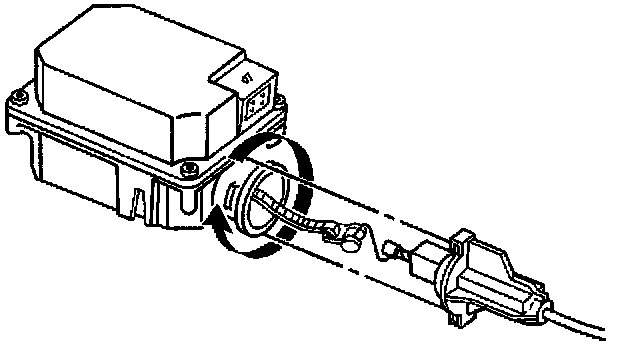 2. Rotate the cruise control cable counterclockwise. Remove the cruise control cable from the cruise control module.