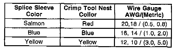 5. Select the proper splice sleeve (2) and the required crimp nest tool, refer to the Crimp and Seal Splice Table.