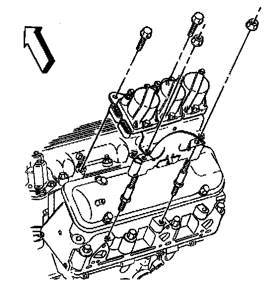 5. Remove the fasteners securing ignition control module assembly to engine.