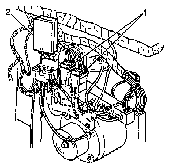 1. Install the multifunction (seat belt, ignition key, and lamps alarm) module (2).