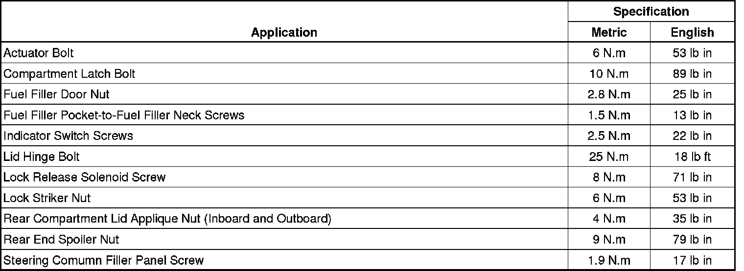 Fastener Tightening Specifications
