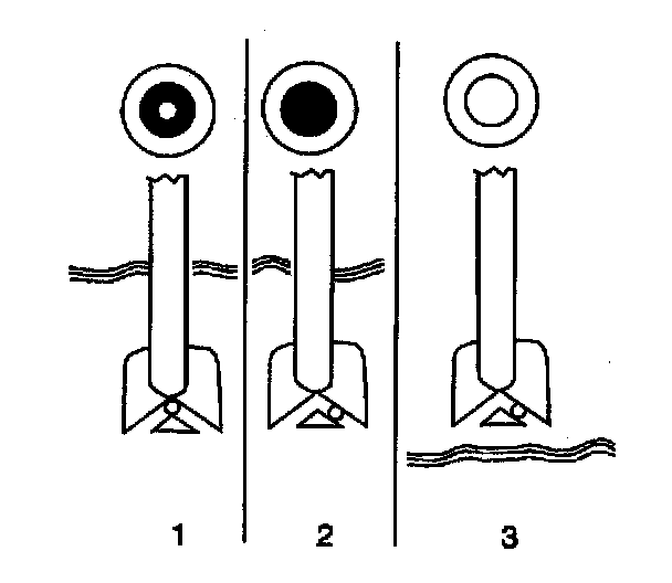 ^ Batteries showing a green dot in the hydrometer (1) do not need to be charged unless they have just been discharged (such as cranking the engine).