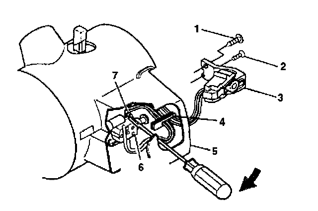 5. Install the round washer head screw (1) into the pivot and pulse dimmer switch assembly (3).