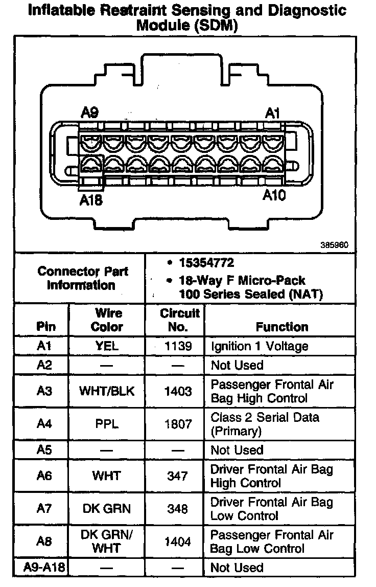 Inflatable Restraint Sensing and Diagnostic Module (SDM):