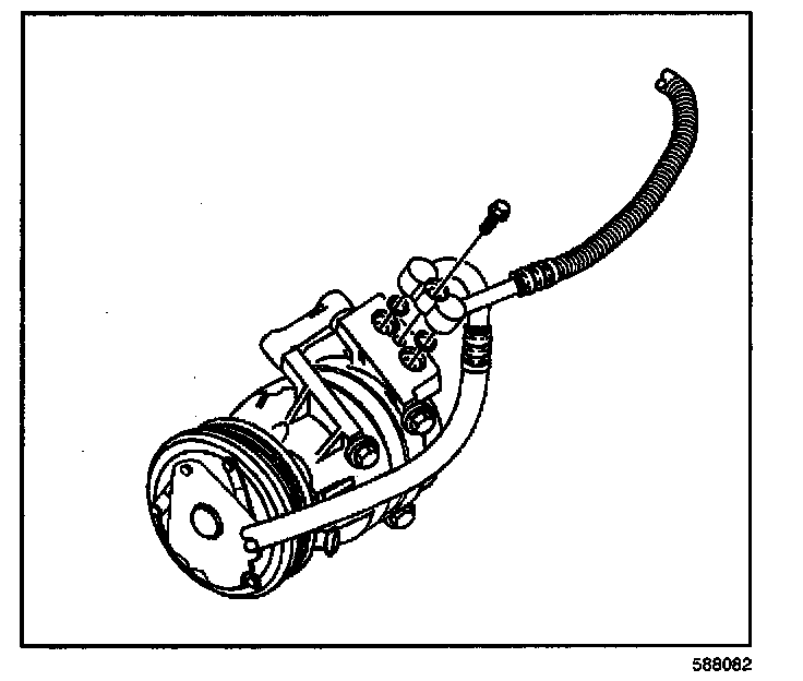 6. Remove the compressor hose assembly mounting bolt from the compressor.