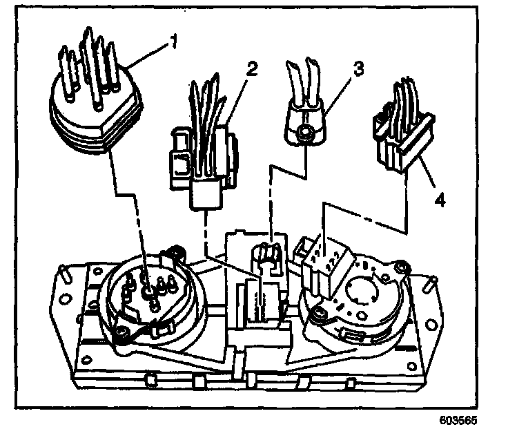 3. Connect the blower motor switch electrical connector (3) from the HVAC control assembly.