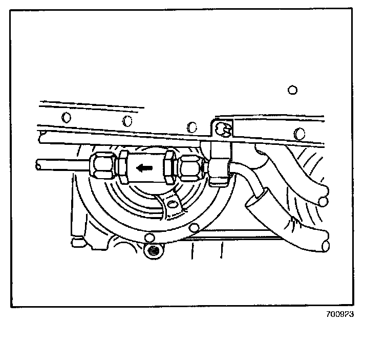 3. Install the liquid line into the A/C refrigerant filter. Hand tighten the nuts.