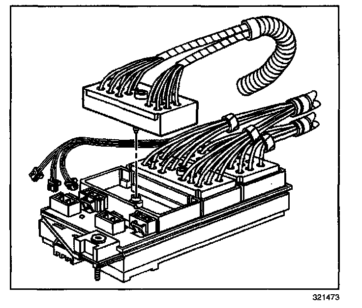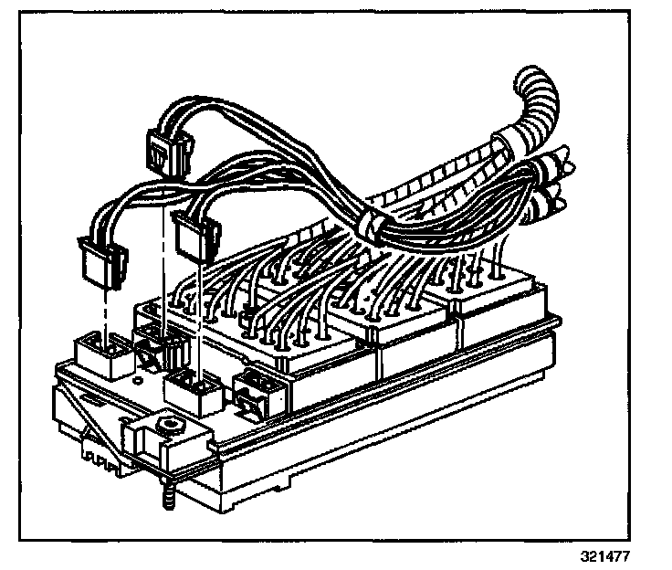 12. Loosen the bolts retaining the engine, IP, and forward lamp wiring harness connectors to the junction block.