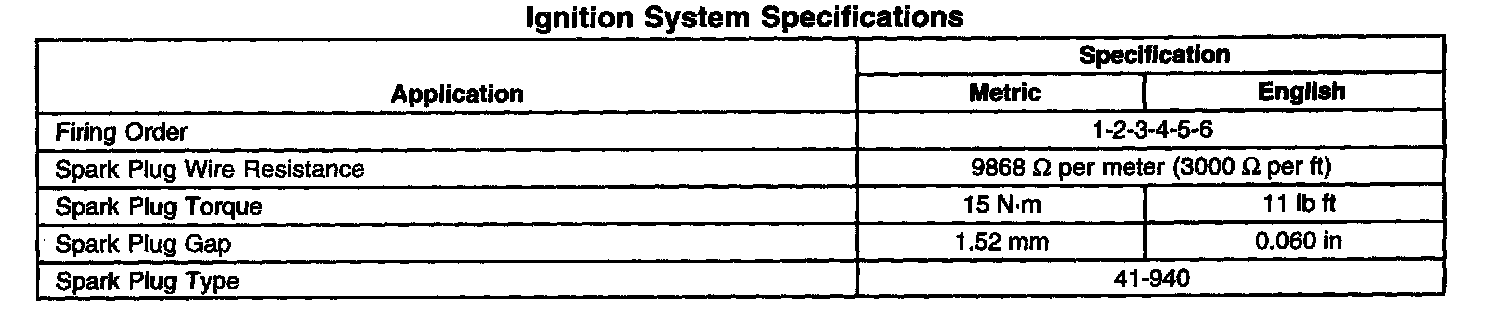 Ignition System Specifications:
