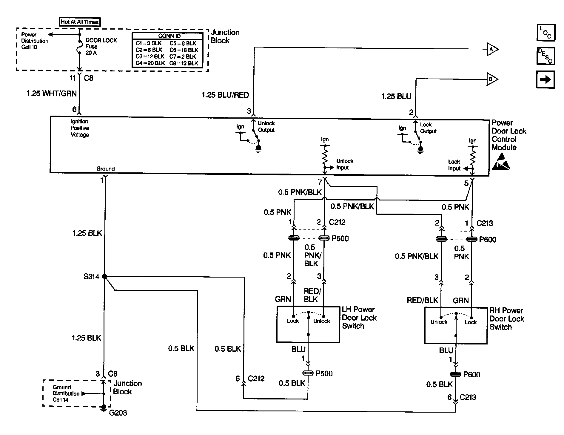Door Lock/Indicator Schematics: Power Door Lock Control Module:
