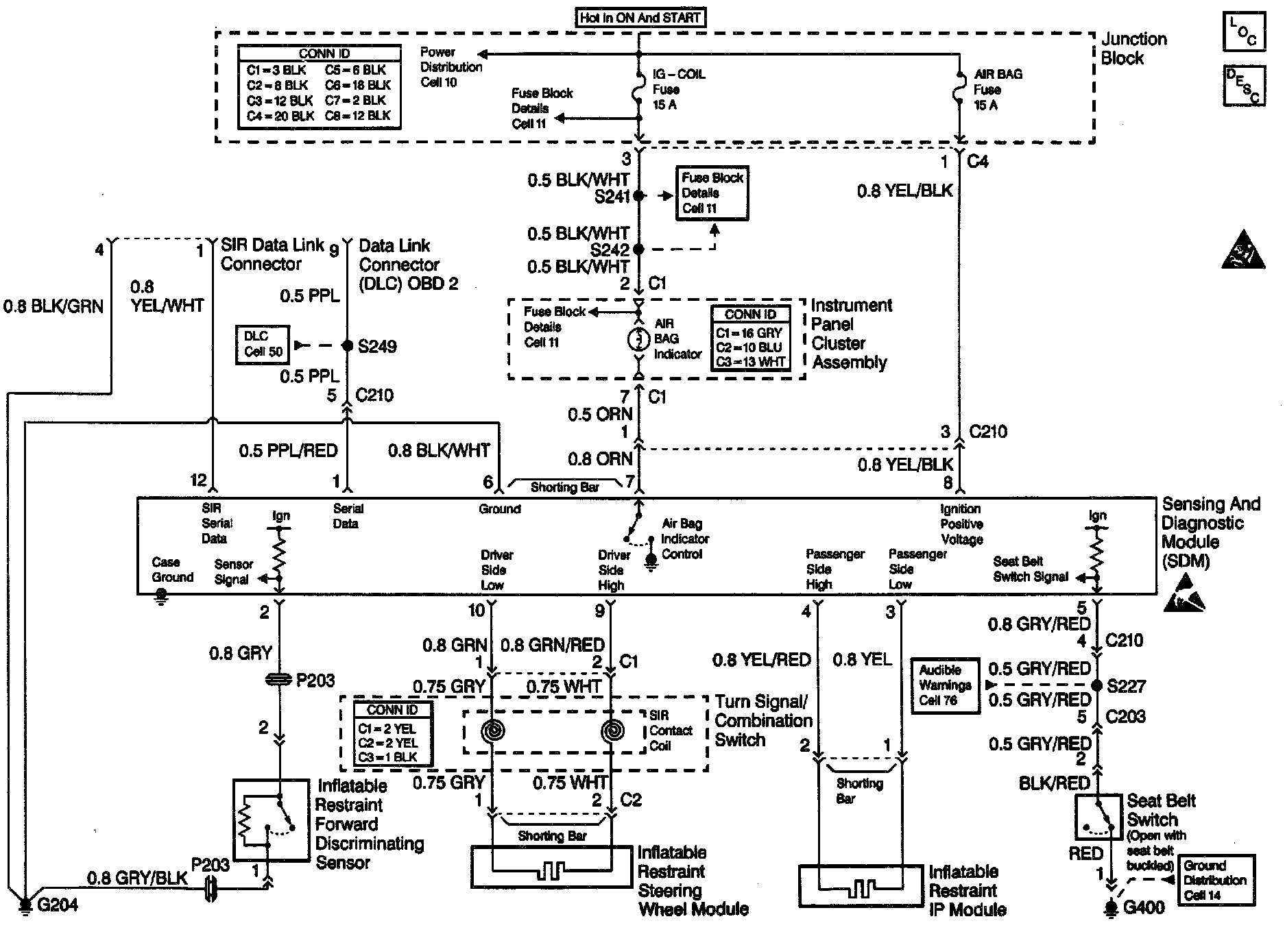 The Data Link Connector (DLC) provides communication with the inflatable restraint Sensing and Diagnostic Module (SDM). The DLC is under the instrument panel. The DLC supplies battery voltage and ground to the scan tool. The scan tool communicates with the SDM on the serial data line. The scan tool is connected to the DLC in order to perform the following functions: