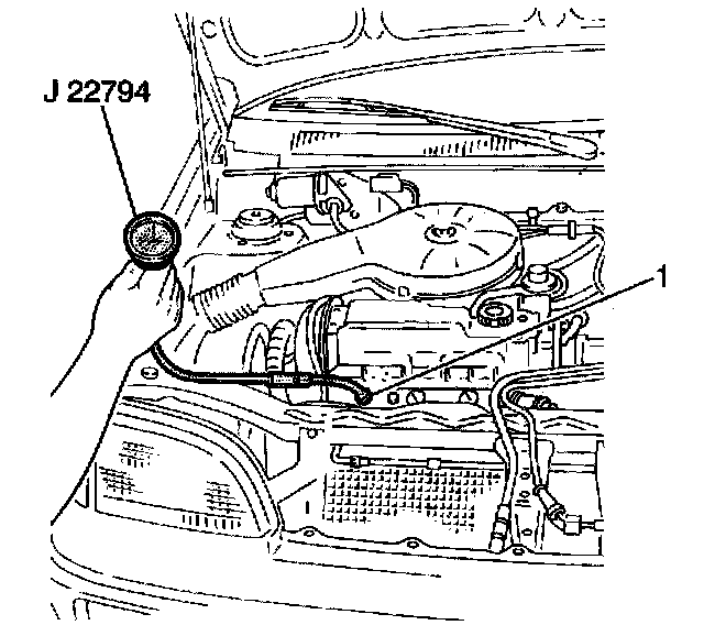 1.3. Install a J 22794 spark plug port adaptor and a compression gauge into the spark plug cavity.