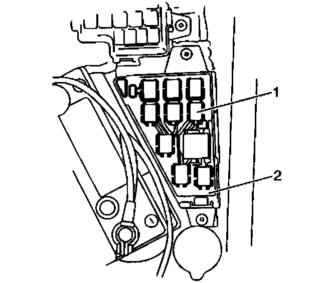 16. Reconnect the Main Relay (1) to the Relay Box (2).