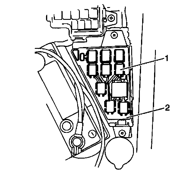 5. Remove the Main Relay (1) from the Relay Box (2).