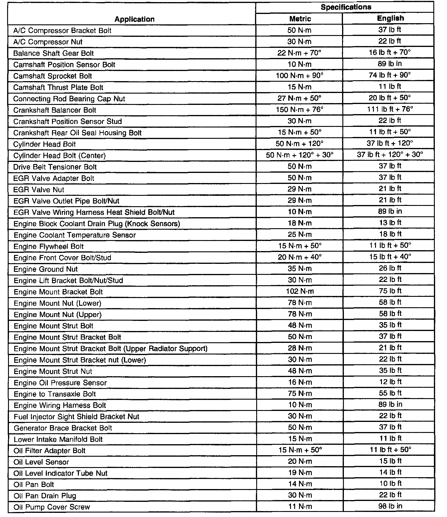 Fastener Tightening Specifications