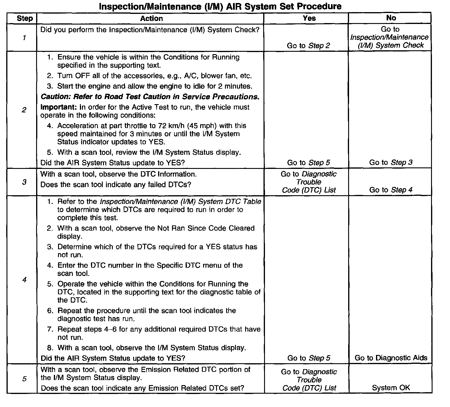 1. Make sure you perform the I/M System Check before performing this test. Failure to do so may result in difficulty updating the status to YES. Inspection/Maintenance (I/M) System Check