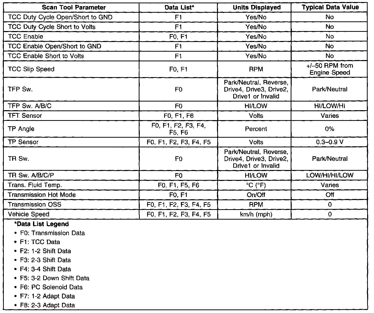 Transmission Scan Tool Data ListUse the scan tool data list under the following conditions: