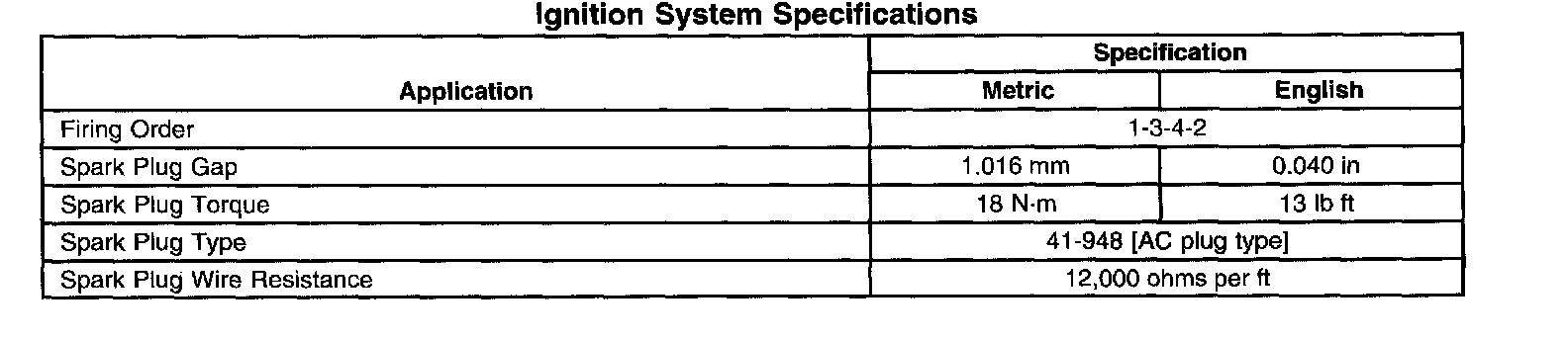 Ignition System Specifications: