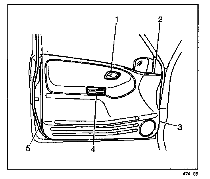 REMOVAL PROCEDURE1. Gently pry the outside rearview mirror opening cover (2) from the front side door.