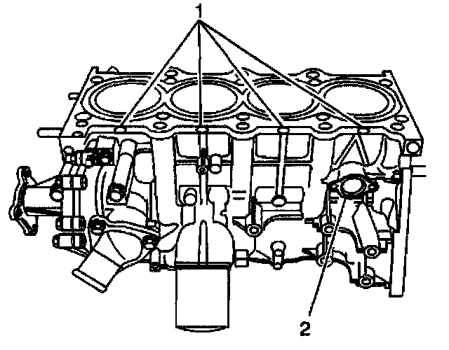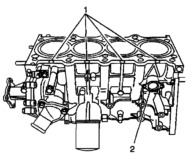 3. If necessary, remove the engine block core plug (2)
