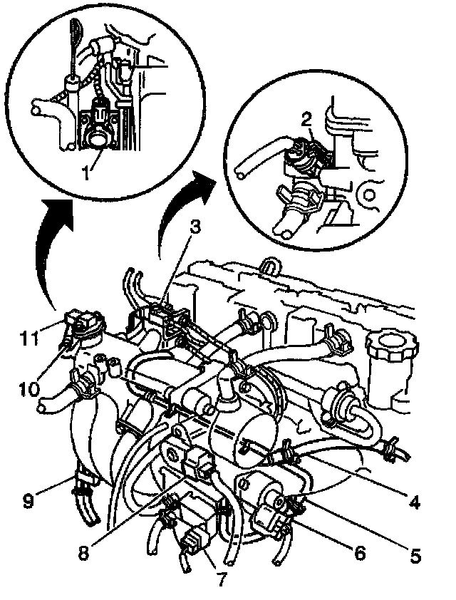 12. Install the EVAP canister purge valve to the intake manifold. Secure with 1 bolt.