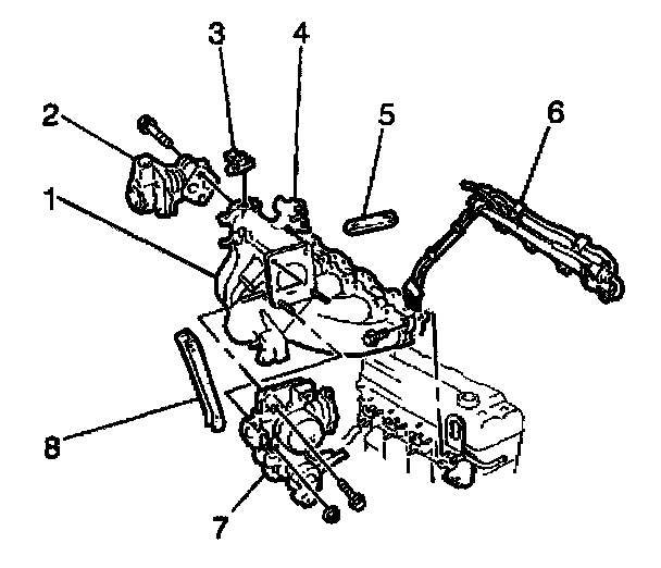 6. Install the fuel line bracket (9) to the intake manifold. Secure with 1 bolt.
