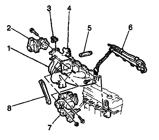 4. Install the intake manifold front support bracket. Secure with the 2 bolts.