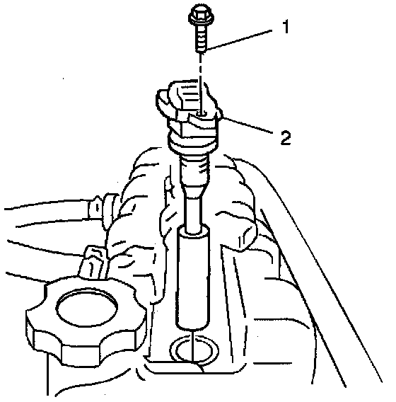 2. Secure the ignition coil to the engine with the retaining bolt (1).