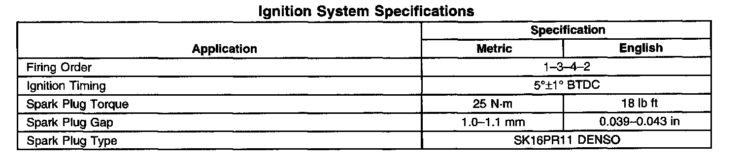 Ignition System Specifications: