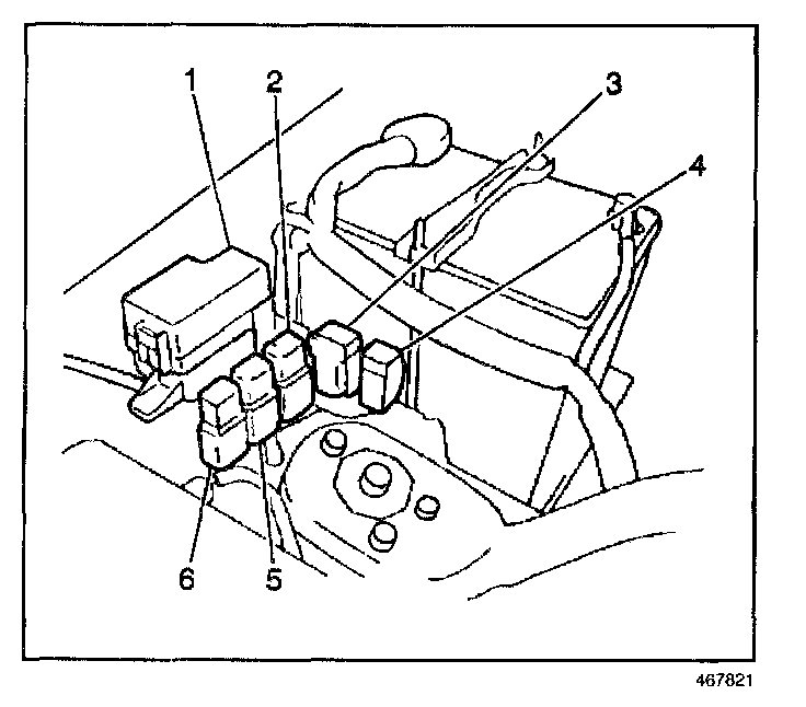7. Install the fuse box (1) to the right inner fender. Secure with the 3 bolts.