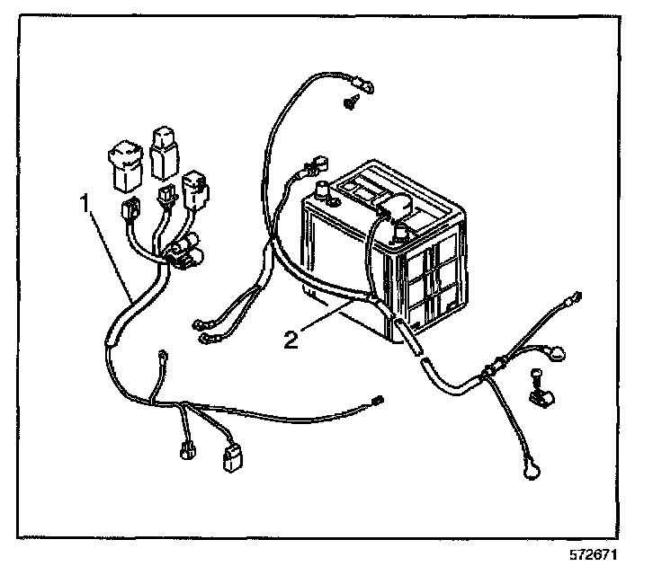 3. Install the battery positive wire to the starter (2). Secure with the nut.