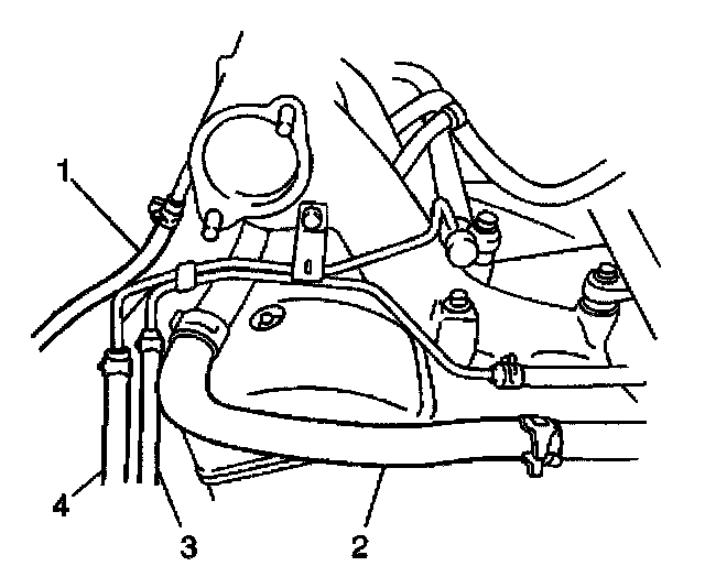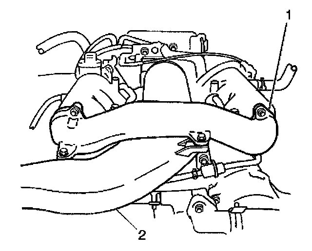 11. Disconnect the brake booster hose (2) from the intake manifold.