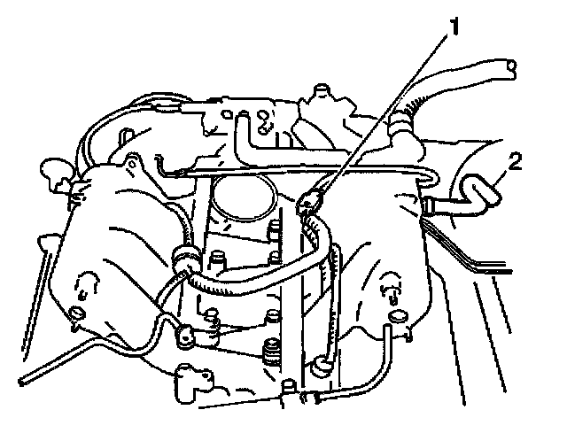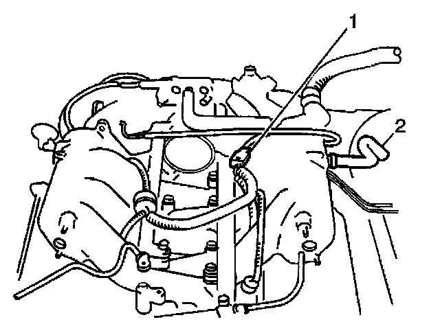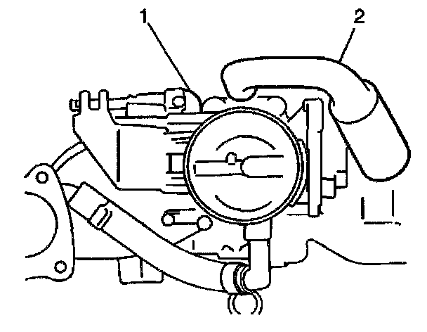 19. Disconnect the hose (2) from the Idle Air Control (IAC) valve.