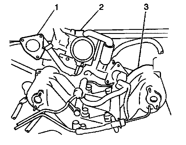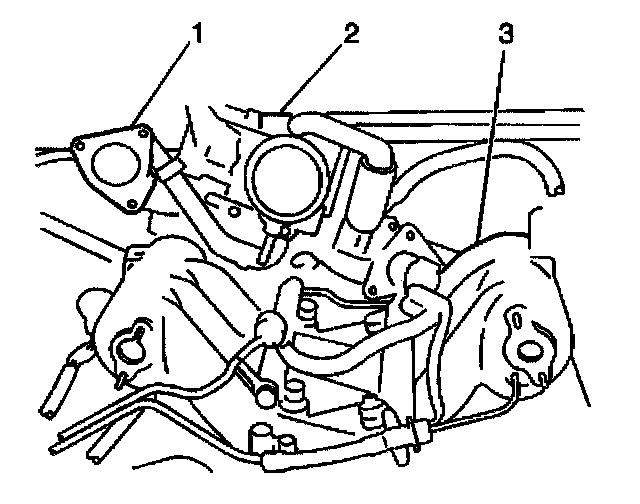 22. Remove the intake collector (1) and throttle body (2) from the intake manifold (3) as an assembly.