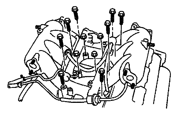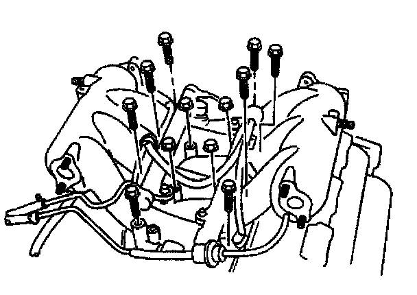 2. Install the intake manifold. Secure the intake manifold with the 8 bolts and 4 nuts.