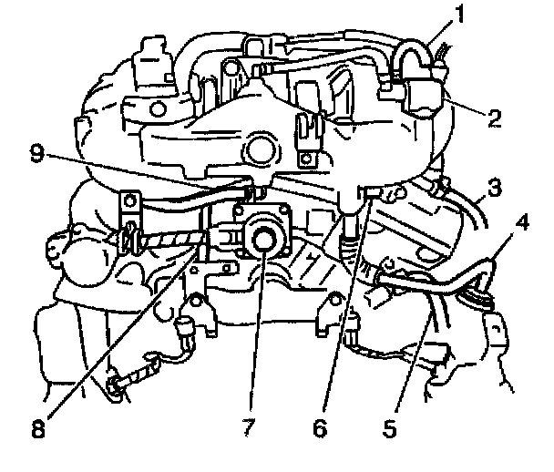 8. Disconnect the automatic transmission throttle cable (1) from the throttle body (automatic transmission only).